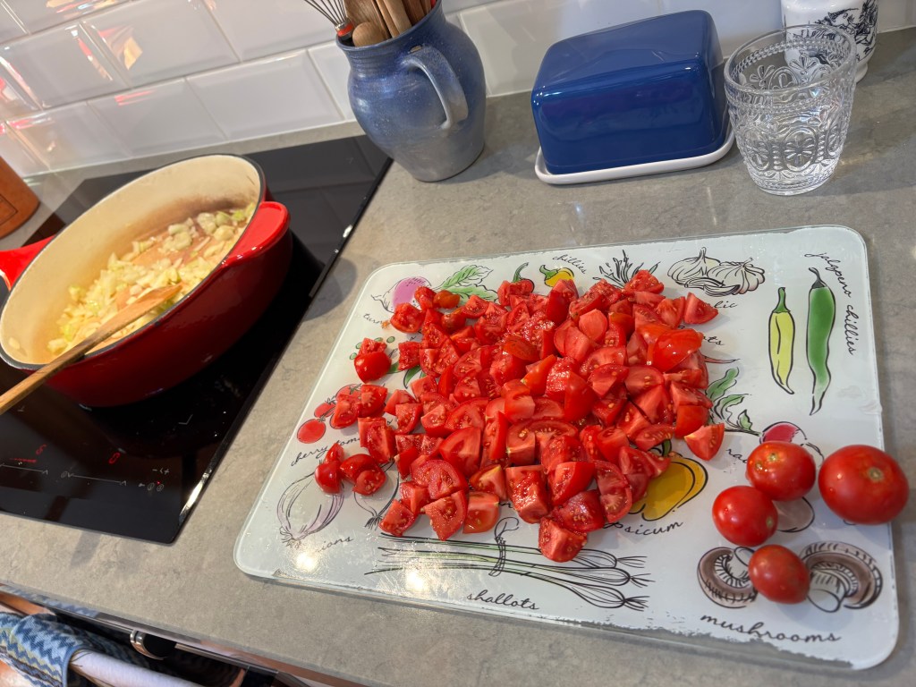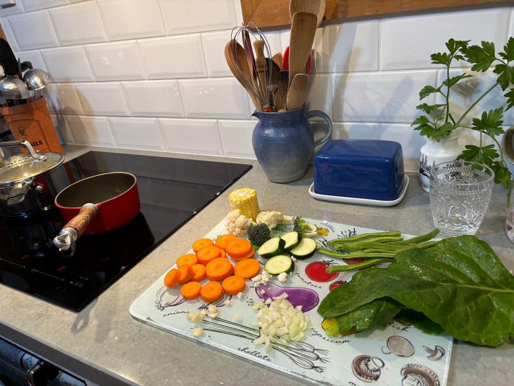 Dinner was based on home grown garden produce. The ironing might get done tomorrow.