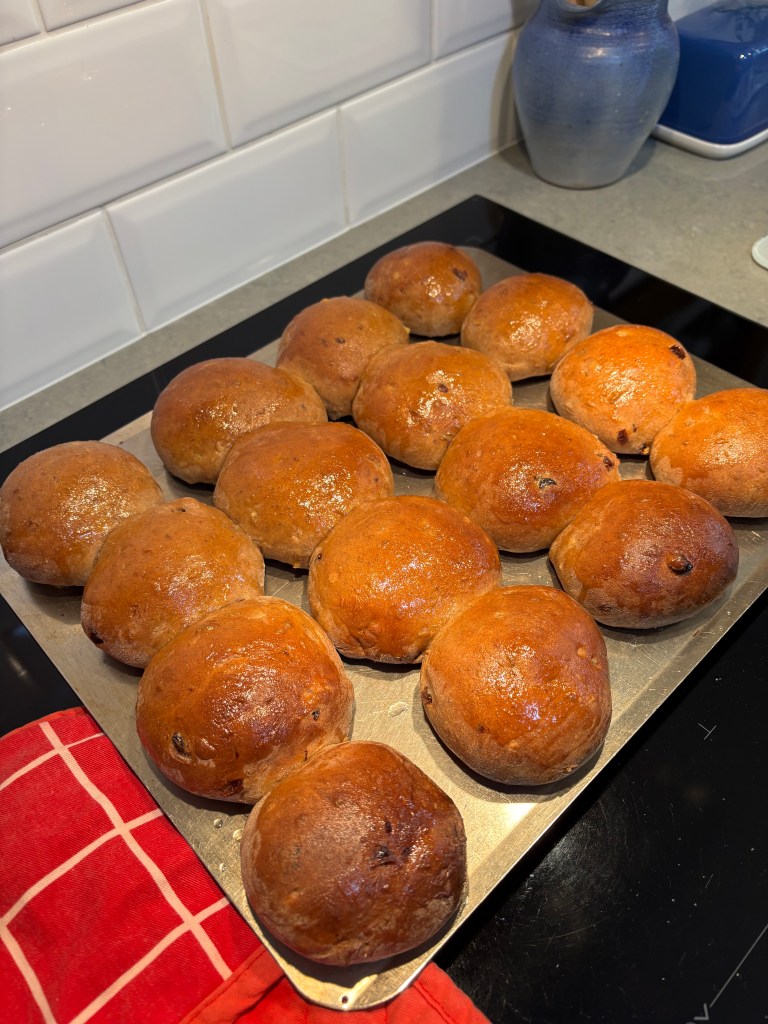 Mum’s favourite recipe. I don’t bother with the crosses, just some glaze