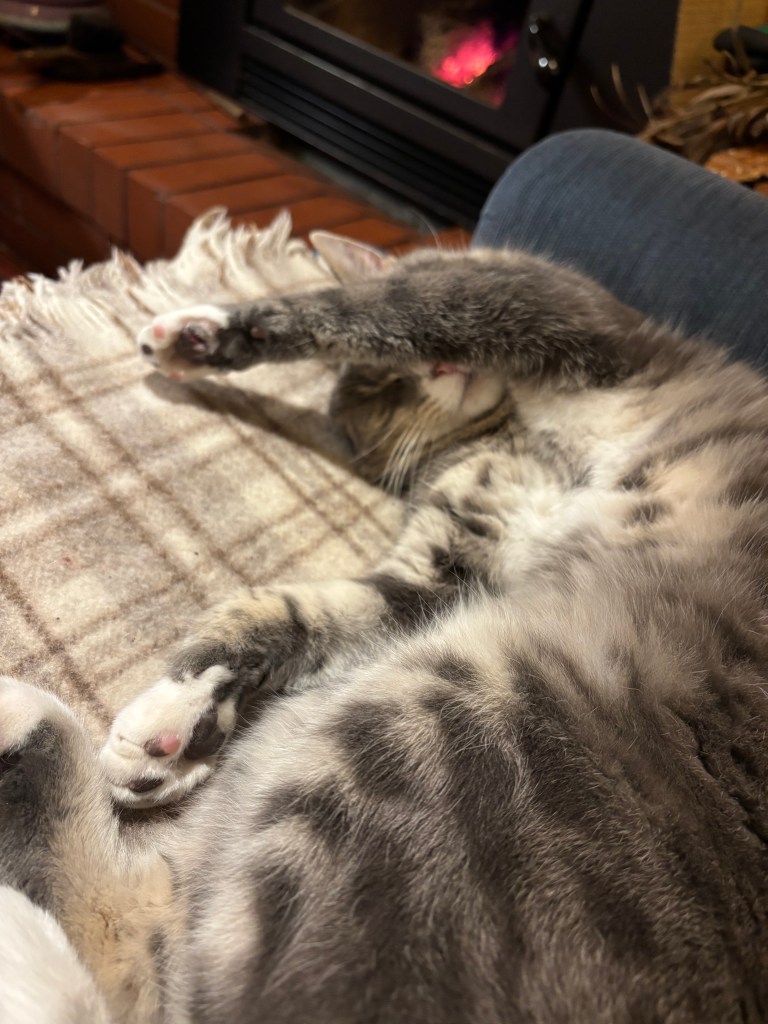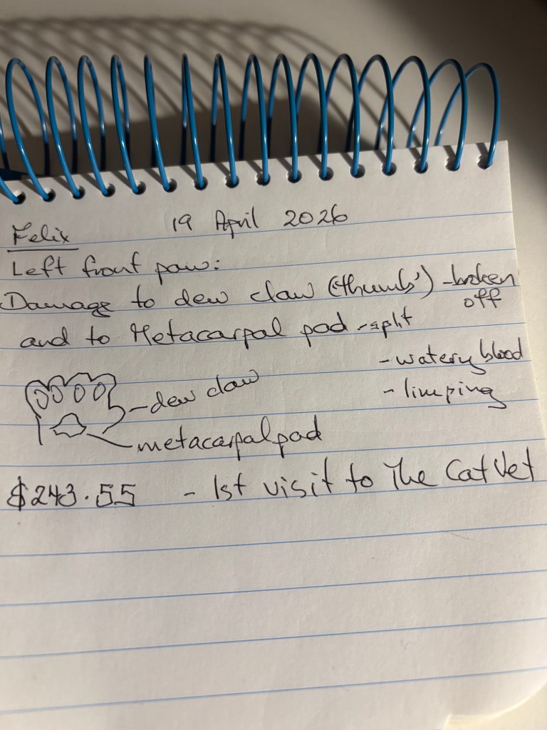 Felix brought in a mouse (or small rat?) last night. We suspect it is either hiding or dead under the armchair in Mum’s room. Vacuuming is on my list for today. Big girl pants on (tight around the ankles) and into it…