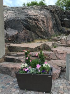 On a street corner in Trondheim, I spotted these colourful flowers, with matching cushions: