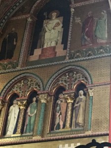 Mum and I didn’t discover L’eglise St Germain des Pres, which is being restored. It’s interesting to think that church interiors, like Greek temples, used to be brightly painted.