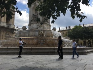 where a film shoot began. The actor, an elegant young woman, walked repeatedly around the fountain filmed on steadicam.