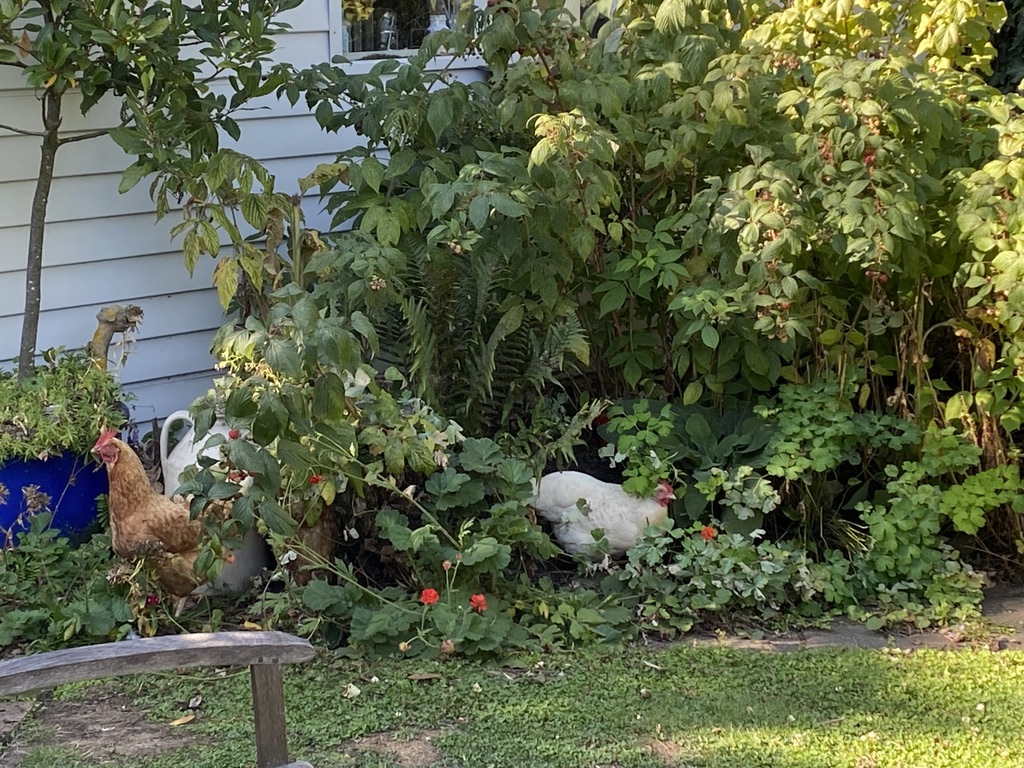 The first time I experienced this “painterly eye” effect, was on observing my hens scratching about under the raspberries.