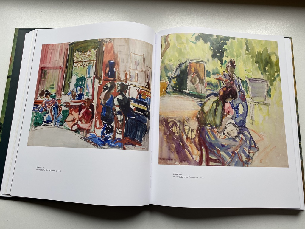 I took note of who owned the paintings. The Auckland Art Gallery seems to own most of them. Other owners include the Christchurch Art Gallery, Te Papa, the British Council, Dunedin Art Gallery, and some private owners such as the Fletcher Family Trust. I was a little disappointed not to see the painting entitled Loveday and Ann. I looked it up online and found it is currently with the Tate St Ives. This seems fitting, as Frances Hodgkins lived and worked there for some time after she had to return to England from France at the beginning of World War I. The painting is dated 1915 and had two private owners (one of whom inherited it) before being purchased by the Tate London in 1944. It shows two women with a basket of flowers. The different characters of the women are quite striking, not to mention the bright colours.