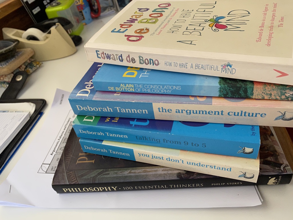 The course has led me to dig out the books I have – some unread – about philosophy, thinking, and language used in argument.