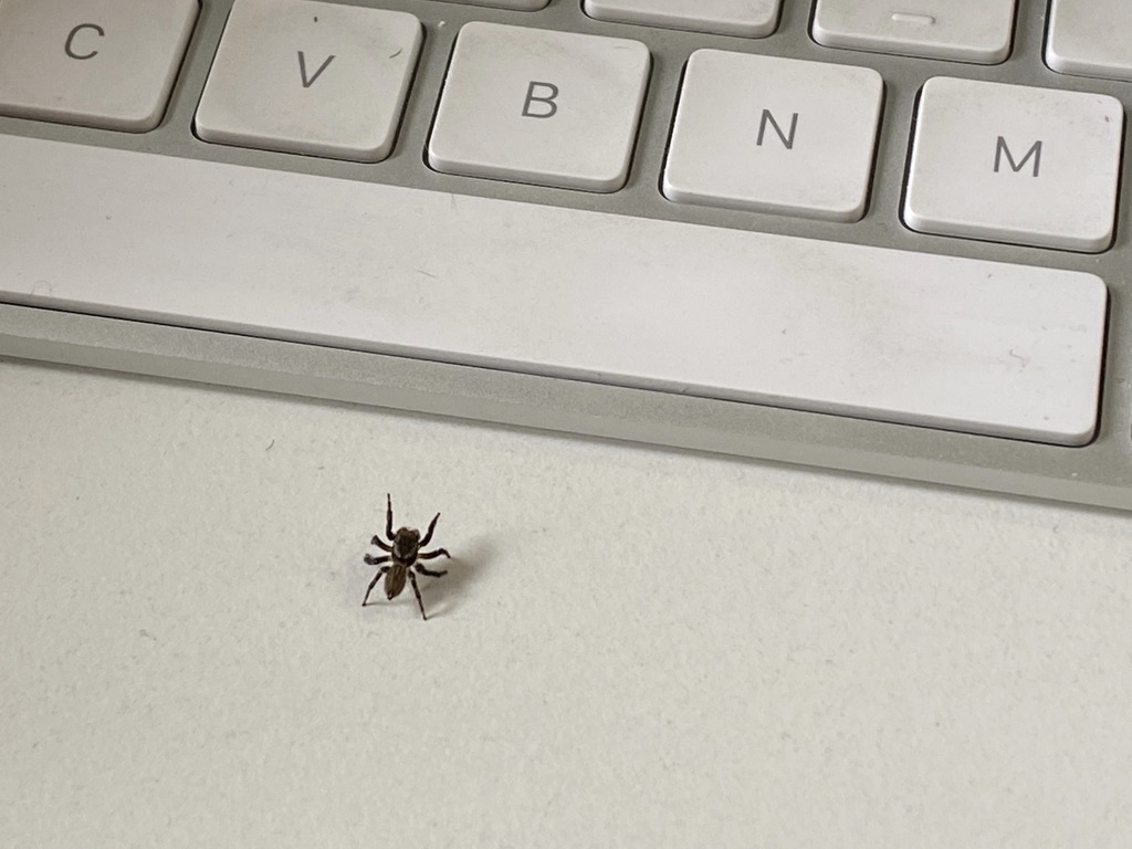 We are told to watch out for wasps and stink bugs. I guess I wouldn’t leave those to sort things out for themselves if they became a nuisance in the garden. White tail spiders are not a favourite, being known for eating our native spiders and for their nasty bite. But the little hopping spiders which occasionally live on my windowsills and on my desk are very cute. Here’s one that hopped out of my printer.