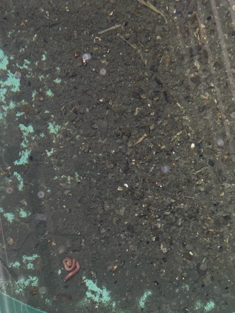 Mosquitoes? and wiggly larvae. There’s a worm in the sediment of one water butt (right).
