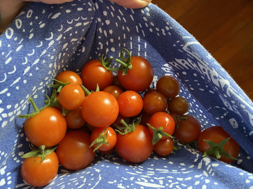 Pockets are okay too for a few tomatoes, but you have to be careful not to forget the collected ones – or accidentally squash them.