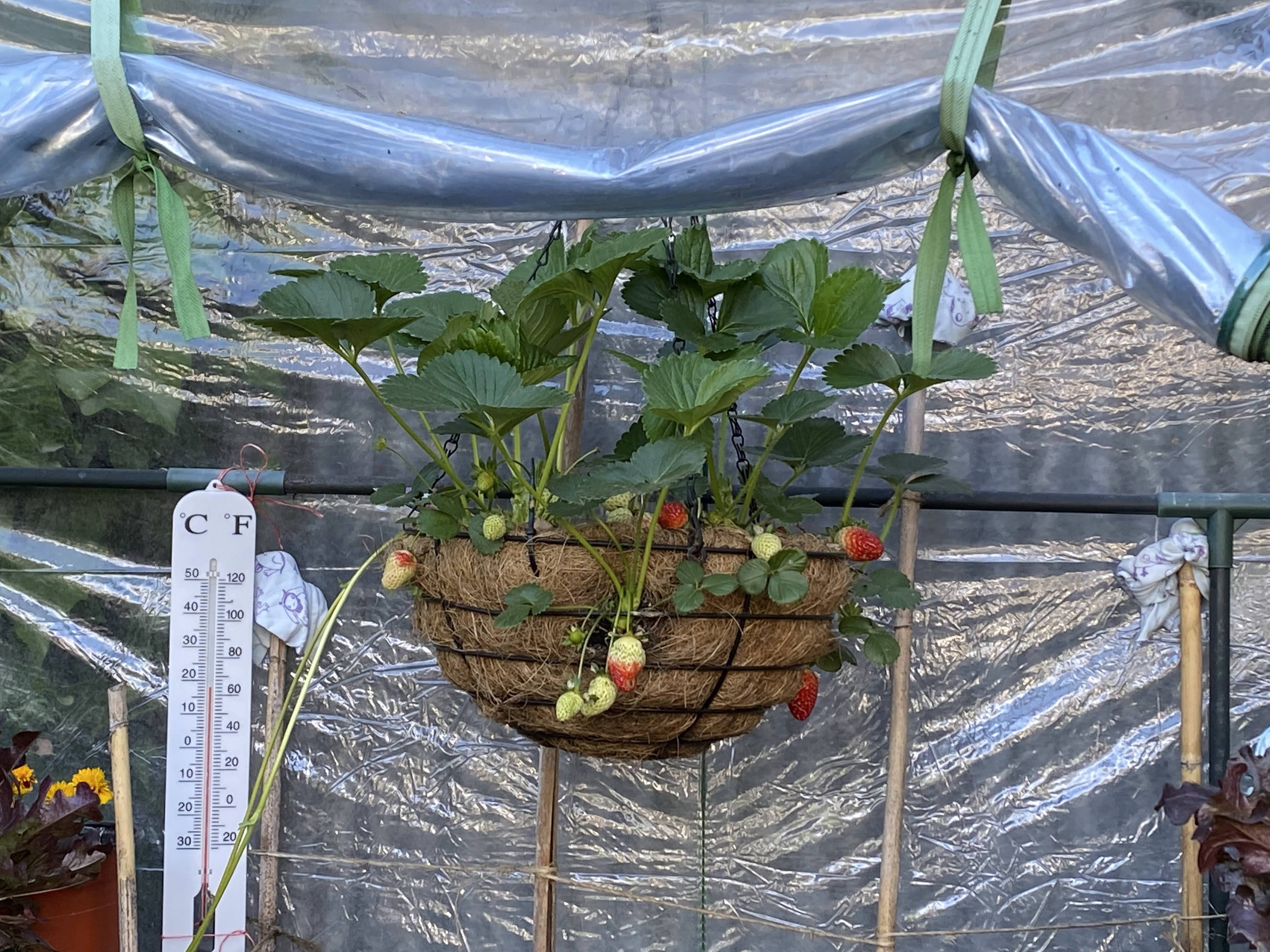 This morning I found the strawberries ripening in the little greenhouse. A feast for the eyes – and for the taste buds before long.