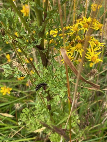 There are still thistles in the paddocks and I was delighted to find caterpillars on ragwort (which fascinated me as a child) and spider nurseries in gorse bushes.