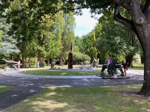 There were animal statues (with children climbing over them – and cooling off in the fountain) and real animals.