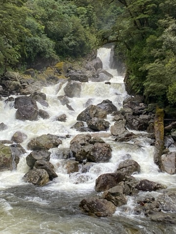 This seven-hour trip involved a boat trip out of the Waiau River and across Lake Manapouri to a coach which took us over the Wilmot Pass to Deep Cove. Here we embarked on a second boat which took us out through the winding fiord to the Tasman Sea.