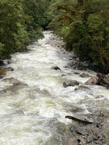 There’s nothing like being in native forest. At Lake Monowai the air was so humid that I was aware at first of every breath I took. The scent of beech forest is like nothing else: rich and sweet with honey dew. There was the sound of bellbirds, crickets, and the creaking of branches in the canopy.