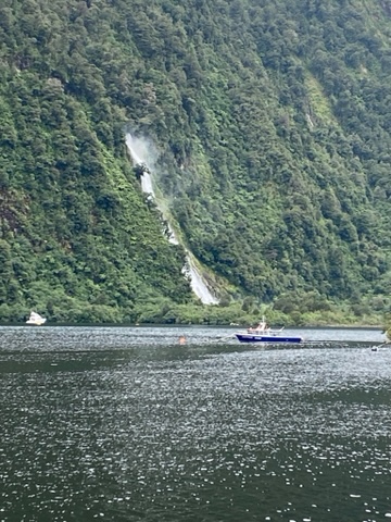 No bottle-nosed dolphins appeared (others had seen them the day before at Milford Sound) but there was a lone seal (as far as we could tell) and, later, a colony of fur seals at the entrance to the sea.