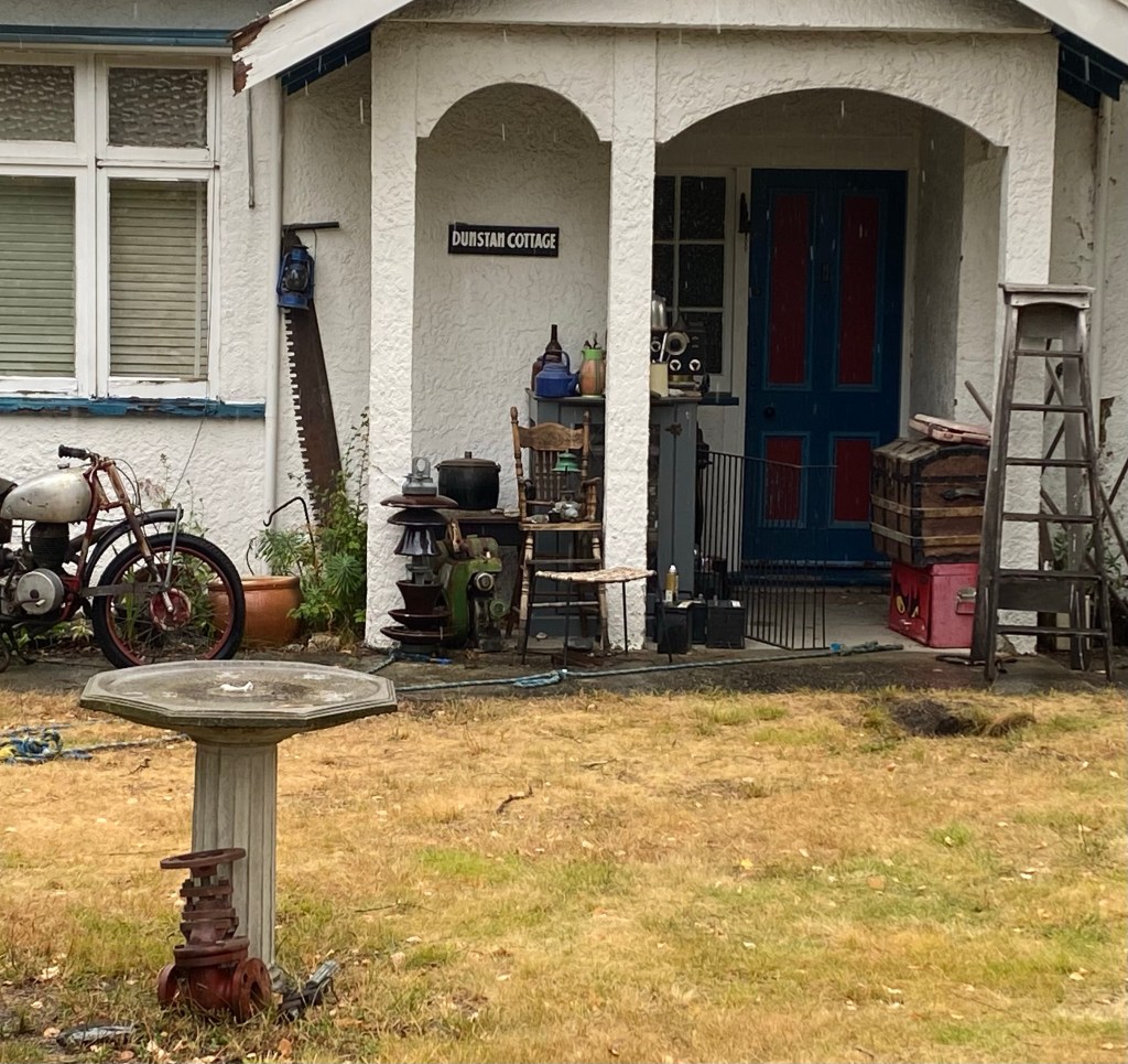 Could a hoarder live in this Clyde house? Another front lawn here had a collection of cannon and gold sluicing gear.
