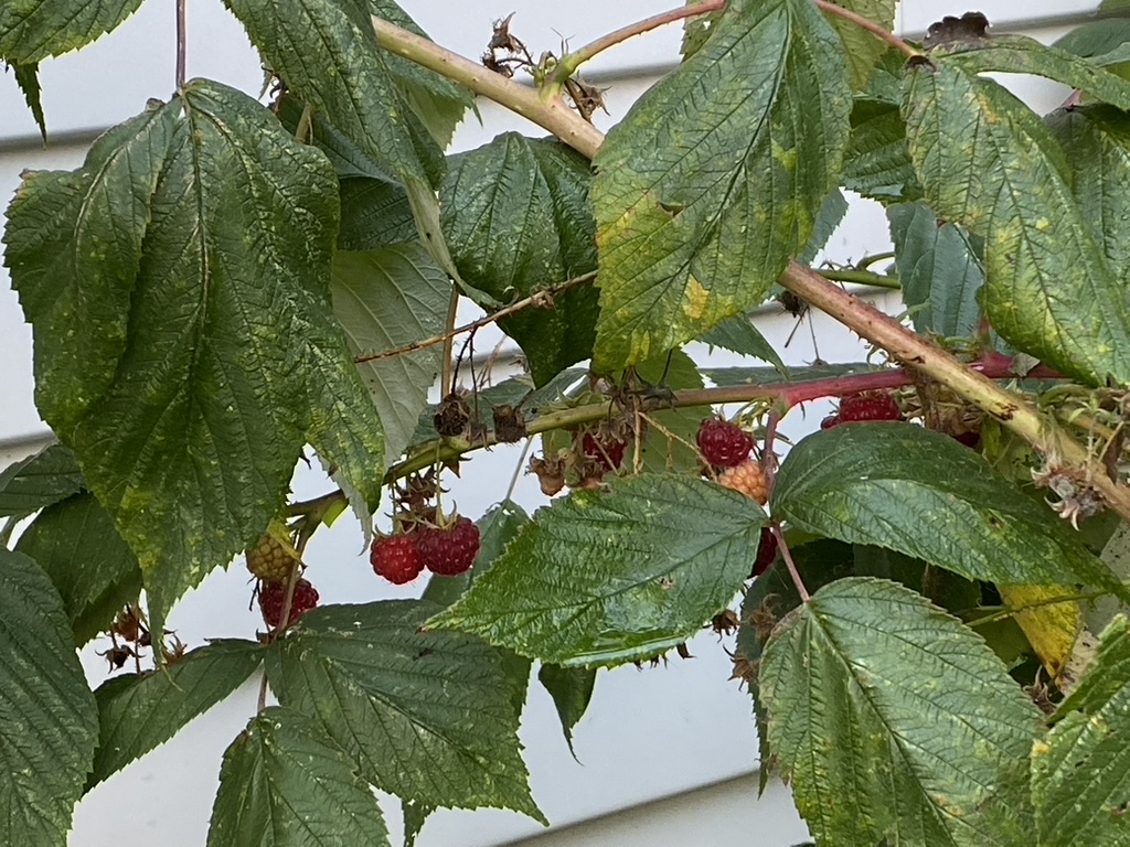 The blueberry is simultaneously fruiting – for a second time – and losing its leaves.