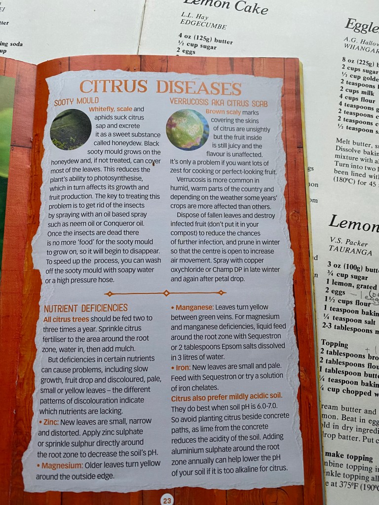It is distressing to find that my beautiful lemon tree is beset with a nasty disease – in fact, it is afflicted with both the diseases shown on the page above. I have been occasionally dealing with the sooty mould, but the verrucosis discovery is a shock.