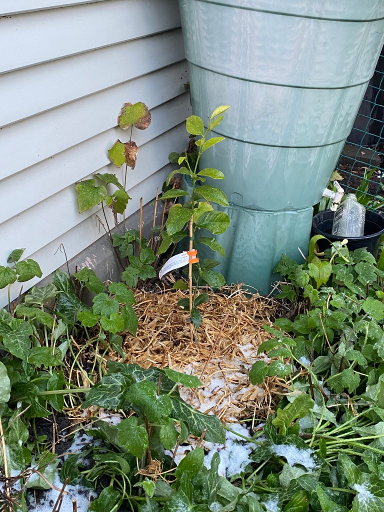 I was relieved to see the lemon tree I planted in the weekend snuggled safely beside the house, the snow barely reaching it.