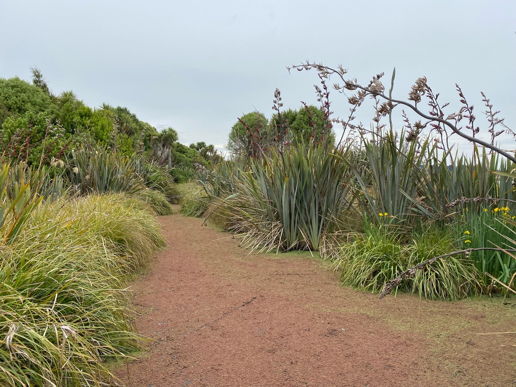 Many birds have chosen to settle here or to return each year. A recent one is the Cape Barren goose which has self-introduced from Australia. Since it was not brought to Aotearoa by humans it is considered a native species. Spoonbills, pied stilts, Paradise ducks, swans, little diving scaup, kingfishers, warblers and pukeko are some of the established birds. We stood on the bank of the large lake and watched short-finned eels cruising by, while Welcome swallows swooped low across the surface of the water to feed on insects.