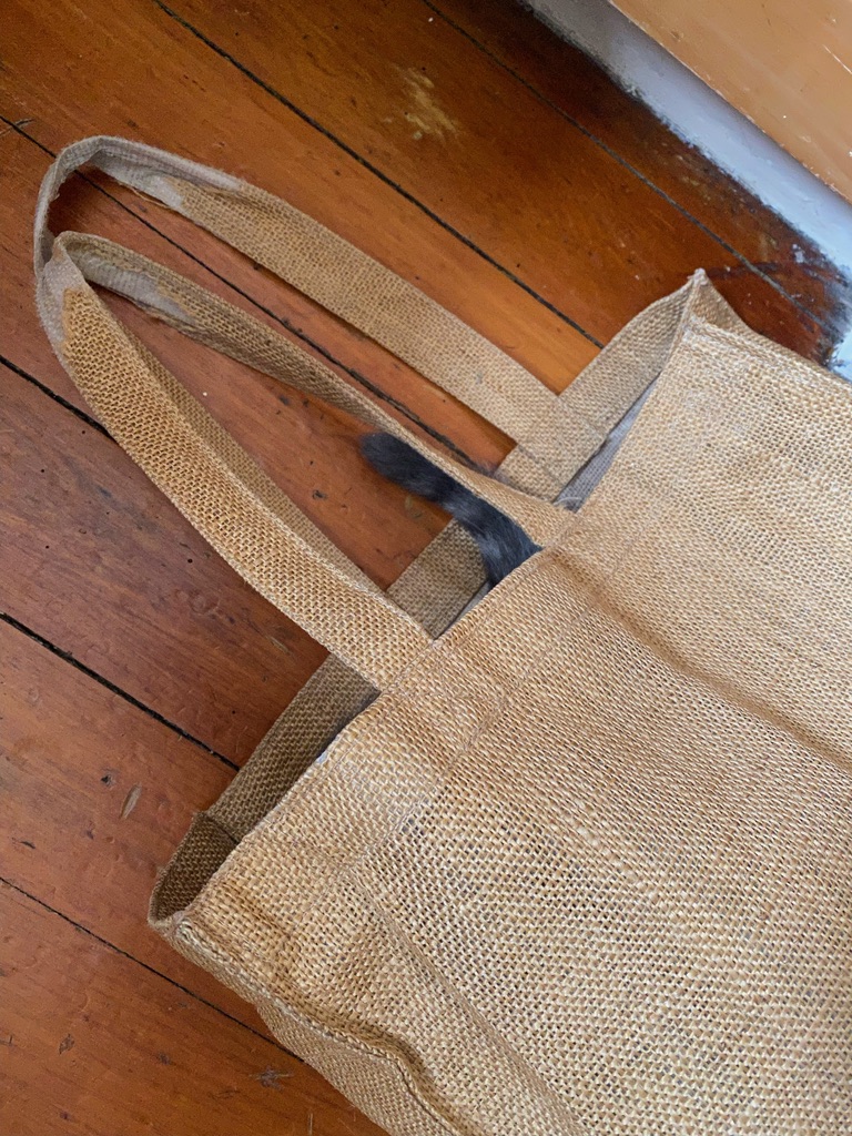 A shopping bag provides some fascination and a good sleeping spot.