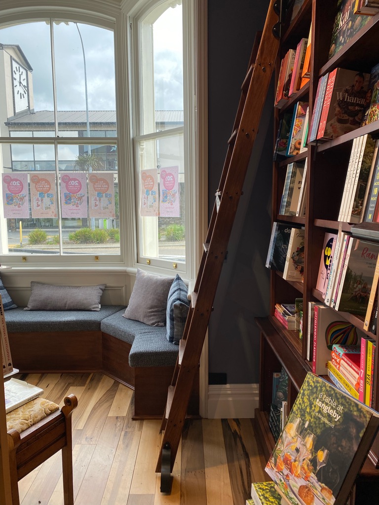 My older brother told me about the new bookshop in Kaiapoi. It is in a former bank building and has a library ladder which slides along a rail. This was the first stop on our visit to Kaiapoi today.