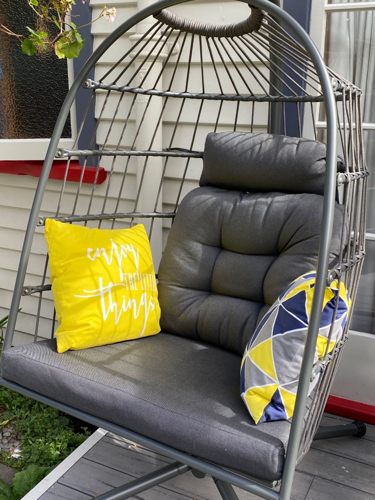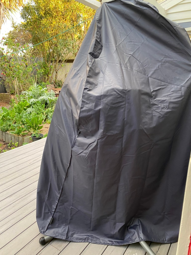 Today there was sunshine, but a chill wind; too cold to sit out on the egg chair. There was no point in removing its cover. It sat on the deck like the Groke.