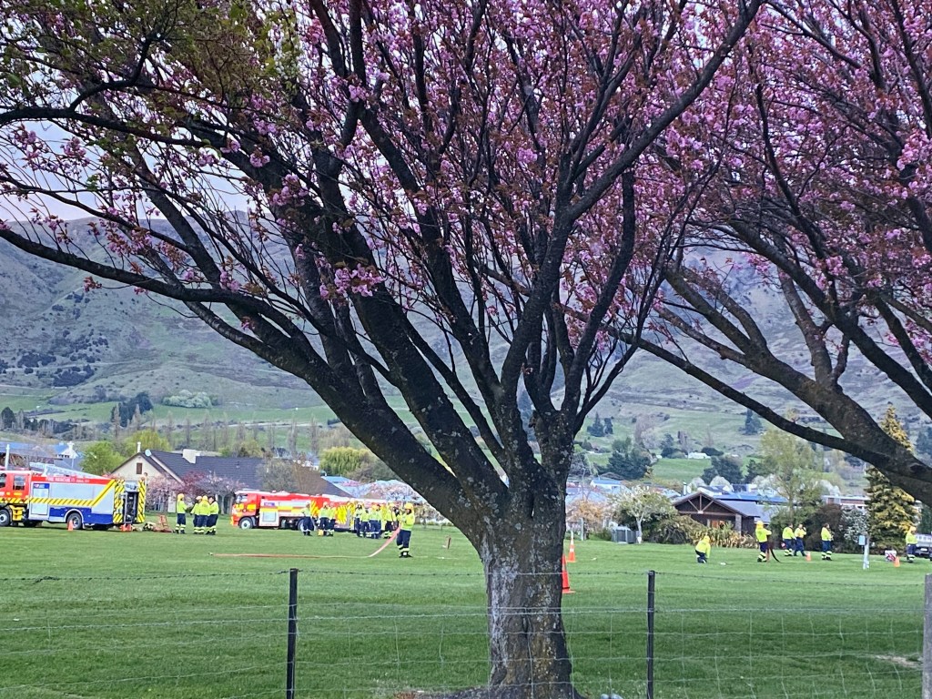 Later, we saw the daffodil colours of fire fighters training under pink blossoms.