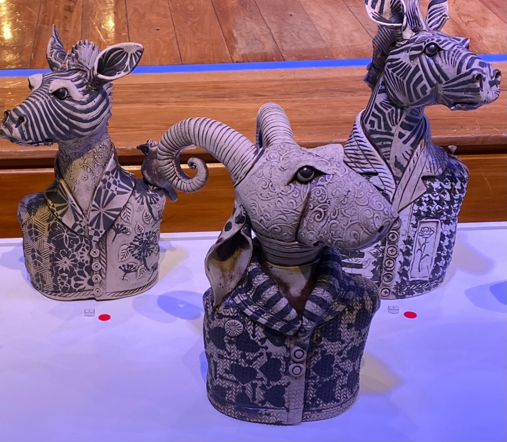 The annual Sculpture Festival is on in the Great Hall. There is a wonderful variety of creative work: glass, metal, ceramic, some with political messages and many with environmental and indigenous themes and materials.