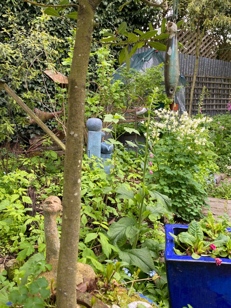 Home again, I feel I am looking with new eyes at the shapes and textures of the garden. Suddenly, it’s alive with sculptural shapes – and actual sculptures – which I had forgotten or taken for granted.