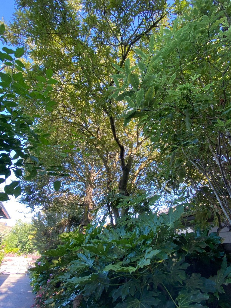 I can watch the washing dry, watch the sunset, observe the birdlife and the bees, notice that the tomatoes are beginning to turn red, see that watering is needed for particular plants, enjoy a cool drink myself, read and think.