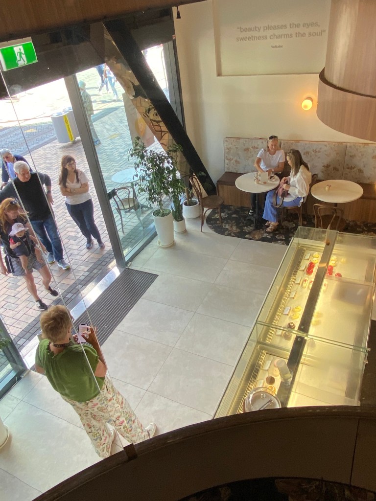 Some people stopped to eat, others bought boxes of treats to take away. No sooner had one line of people gone, than more came in the door. The assistant was continually topping up the depleted counter display with fresh pastries.