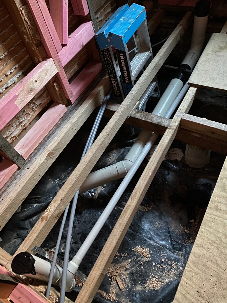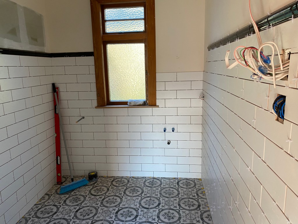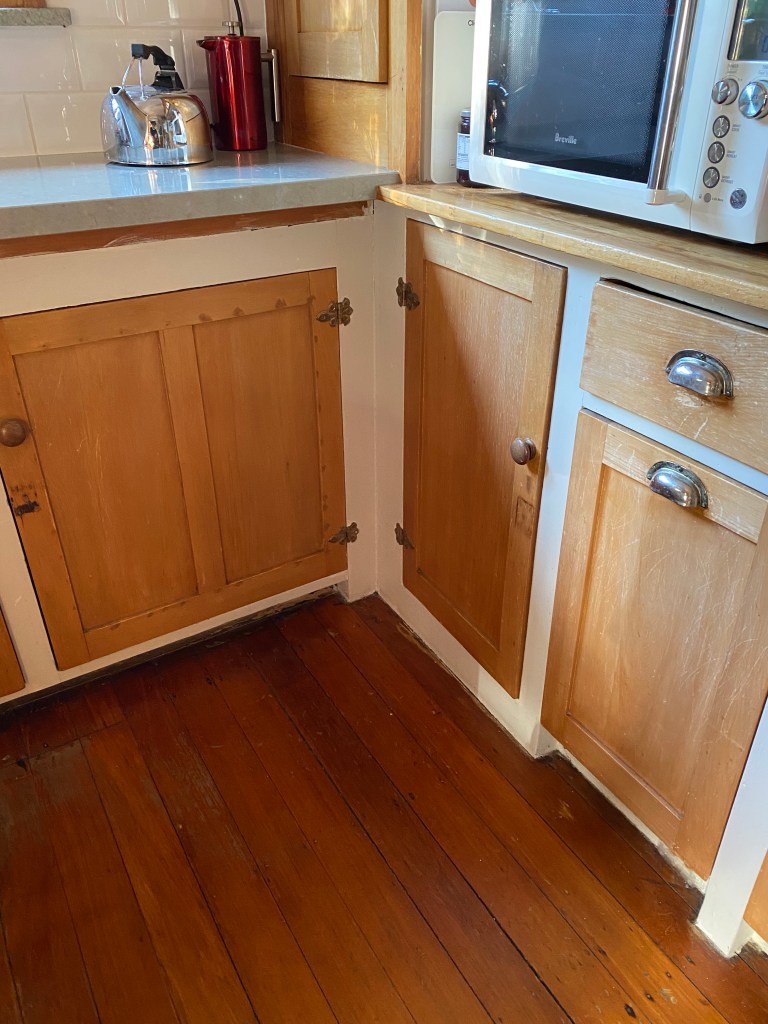 For some reason (I seem to have lost the ability to hold details in my mind) the rimu door and roof access architraves could not be reused and were replaced with pine. The painter and I decided, on the hoof, to paint them the same colour as the walls and ceiling rather than staining them to look like rimu. I’m happy with that choice – and there is an example of it in the kitchen.
