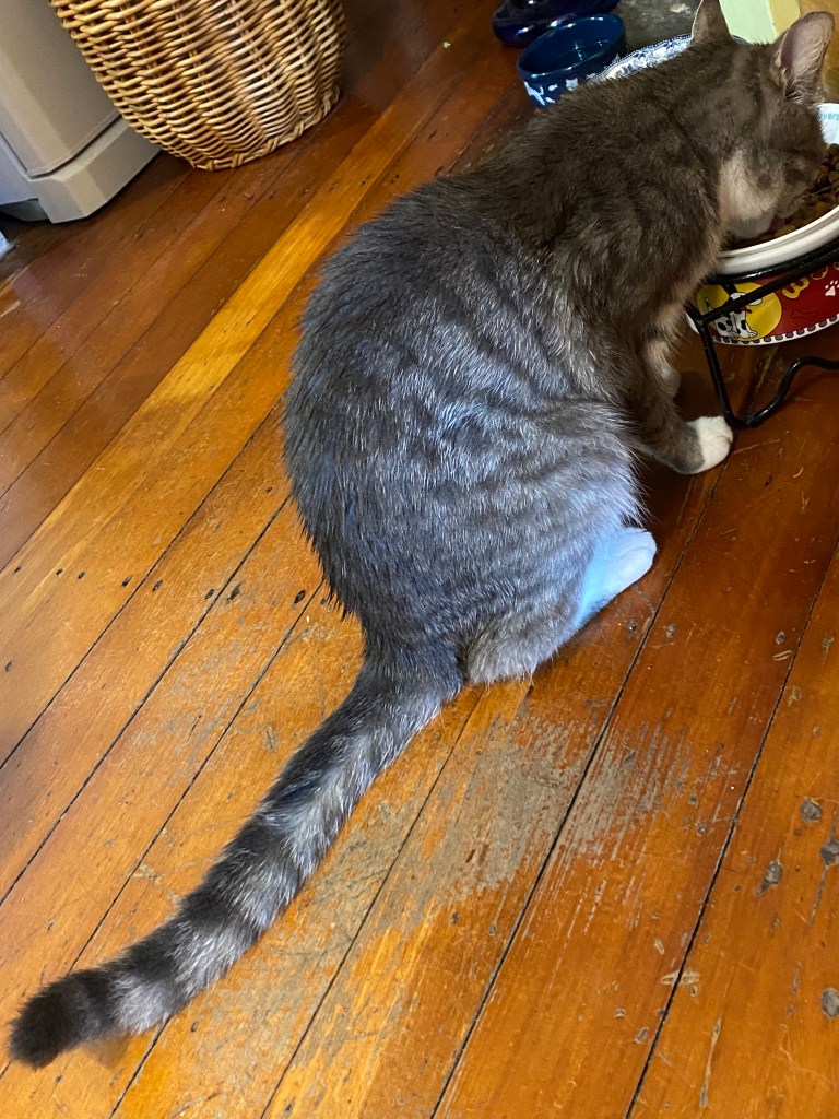 The temperature is down, so we’re in our winter woollies. Inside, it’s cheering to put on the Christmas tree lights. Felix comes in to be towelled dry and to eat.