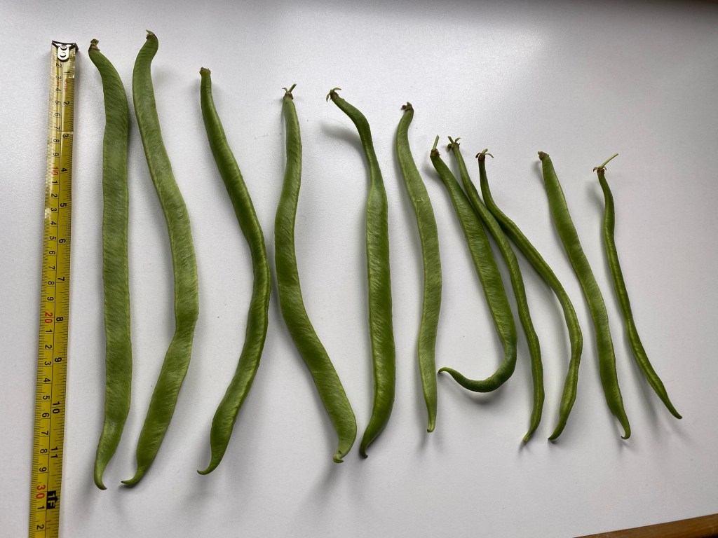 I thought they are called ‘runner beans’ because they climb, but perhaps its because of the rate of their growth. Not quite overnight, as in Jack and the Beanstalk, but pretty quick all the same. Today I noticed that there are a few beans ready for picking. I looked back at my photos to see how long they took from the start.