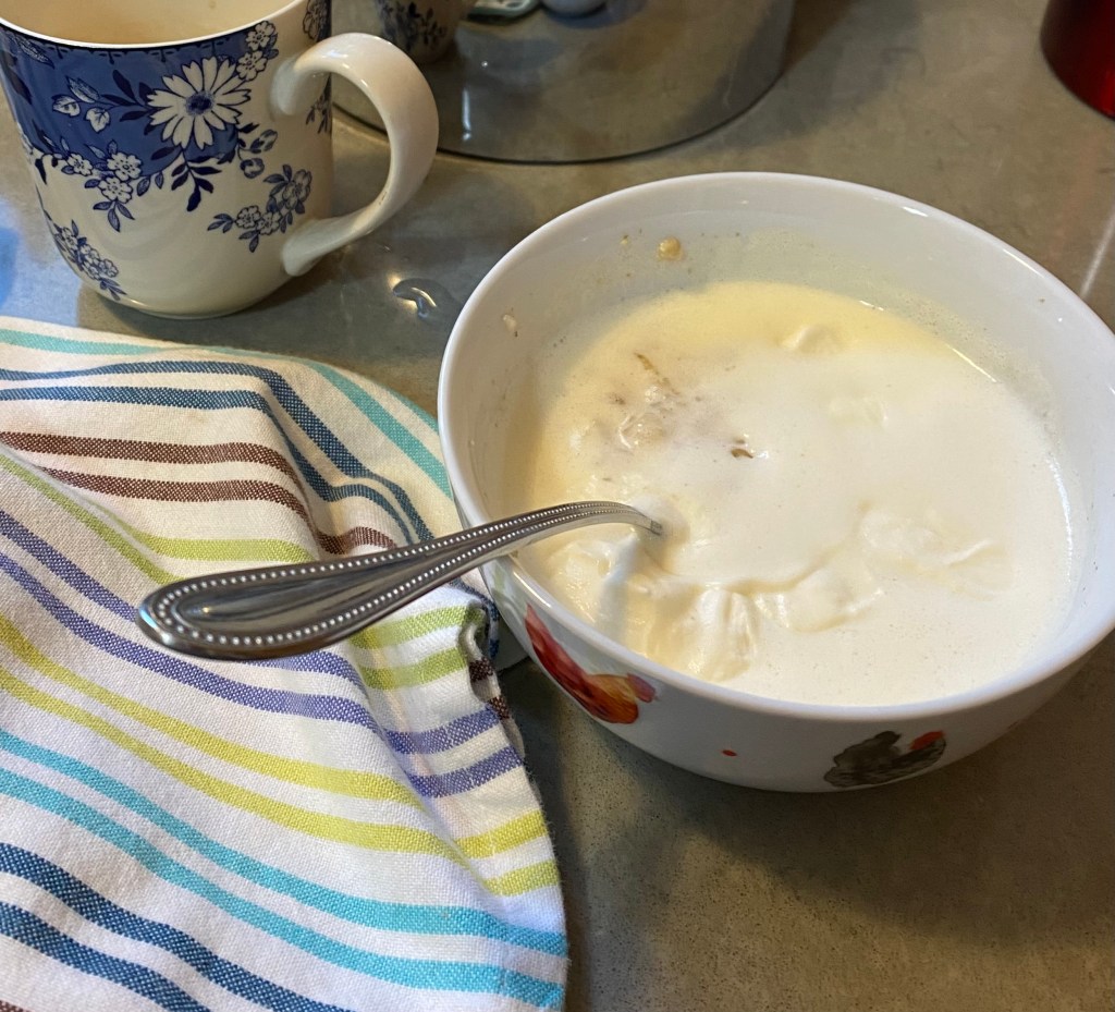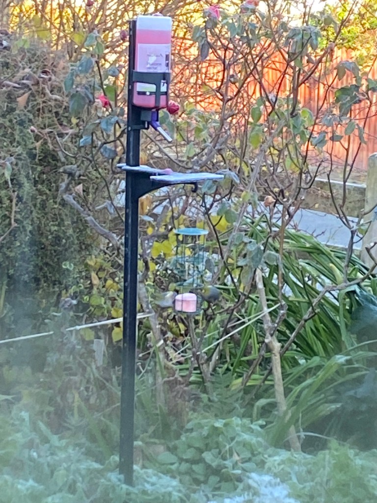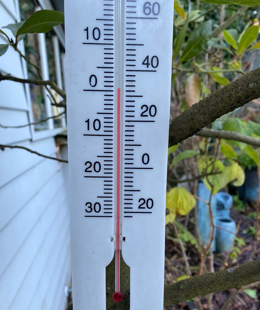 By the time I ventured outside, it was one degree, and cream on porridge and in coffee seemed like a good idea. A bit cloying, it turned out; easily fixed by a drink of water and cleaned teeth. Meantime, wax eyes could be seen at the bird feeder through a window misty with condensation. Felix chose to stay in bed.