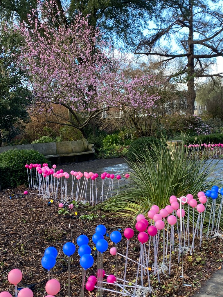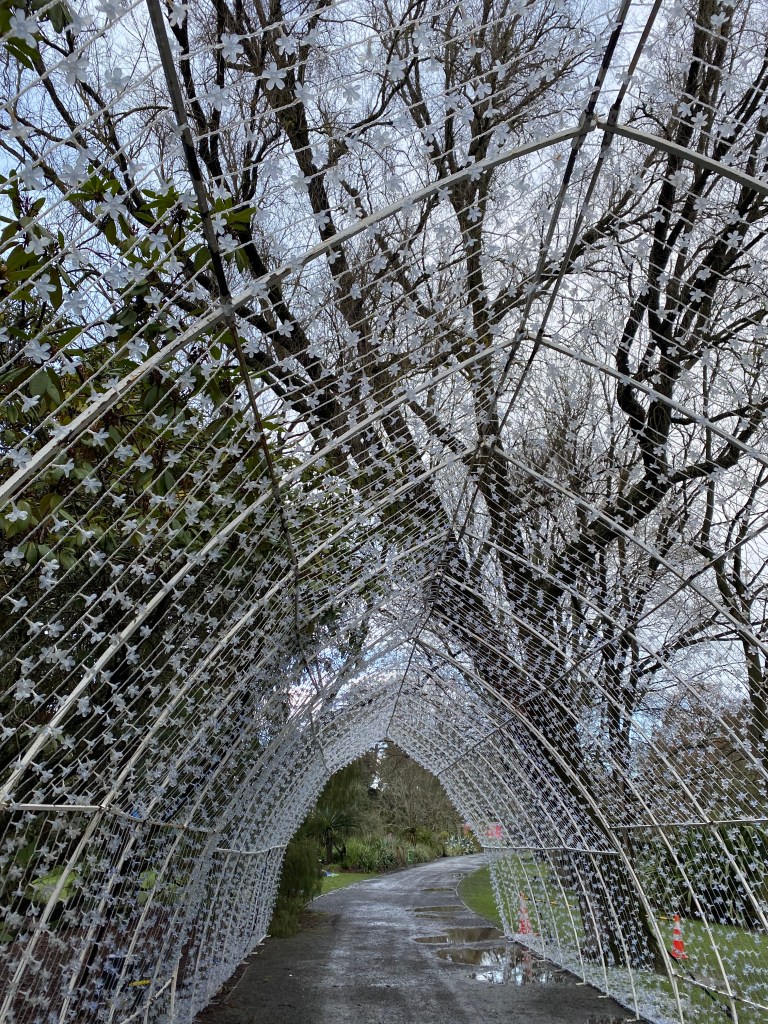 There’s a carousel going up near the Botanic Gardens car park and a sign by the kiosk says ‘Light Show Packing In’. There is evidence of this happening, but there were no people in sight as I walked through the Gardens on this cold showery day. A sign on the kiosk door said, ‘Meeting in Progress’. Perhaps they were all in there keeping warm.
