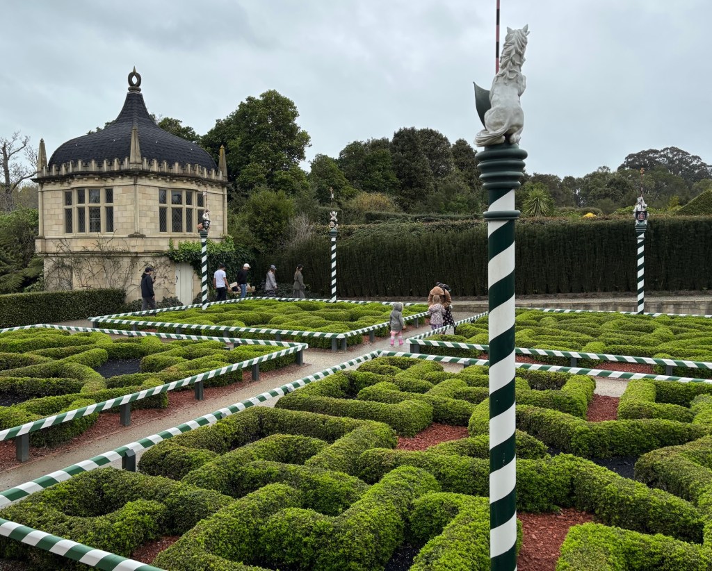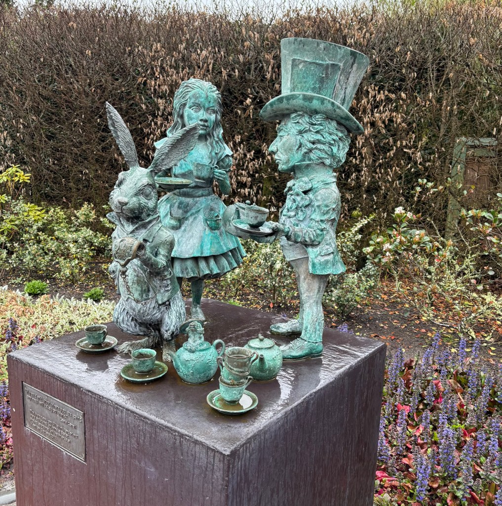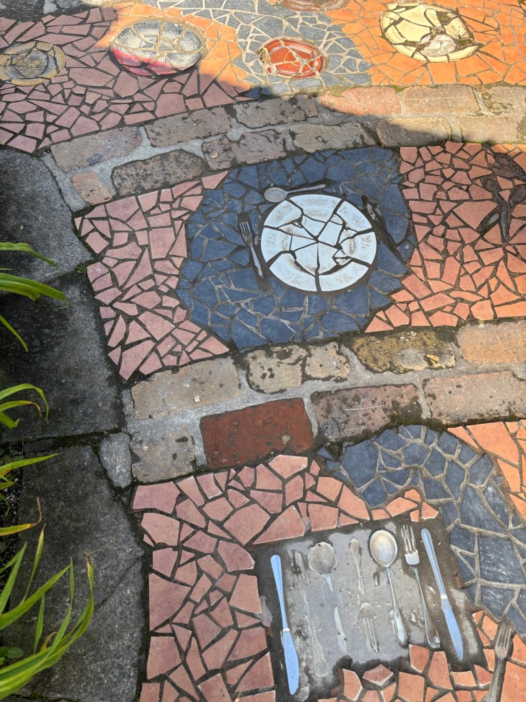Ceramic bambooWater bubbles up the middleModelled on a Tudor buildingShakespeare’s coat of armsMosaic in sustainable gardenMozart’s Magic Flute is the theme in this garden