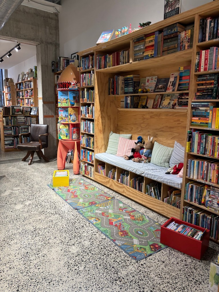 This is a miniature model of a bookshop Old turntable shelfChildren’s reading nook Of course there is a door disguised as a bookshelf