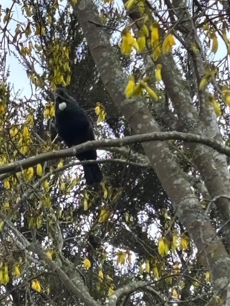 On the walk I managed to photograph a tūī. There were lots of them enjoying the kōwhai flowers. There were also fantails and some parakeets.