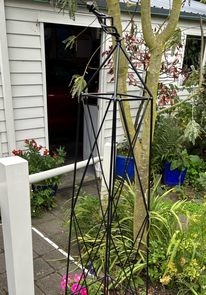 I like your obelisk! I also bought plants today – just half a dozen silver beet, which have now been planted. While I was clearing a space for them I accidentally removed Ziggy’s catmint which I shall now need to replace.