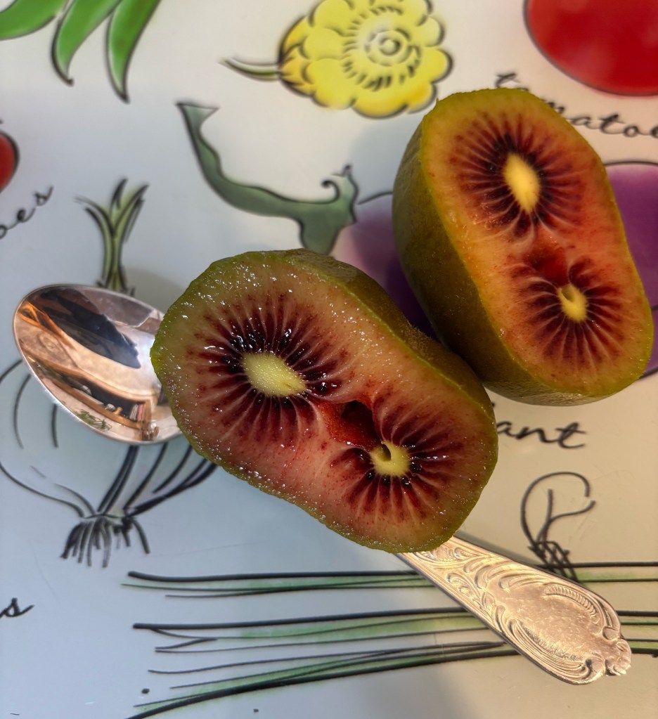 As kids we would be delighted when, occasionally, an egg turned out to be a ‘double-yolker’. This morning I sliced open a double-centred red kiwi fruit. It was delicious.