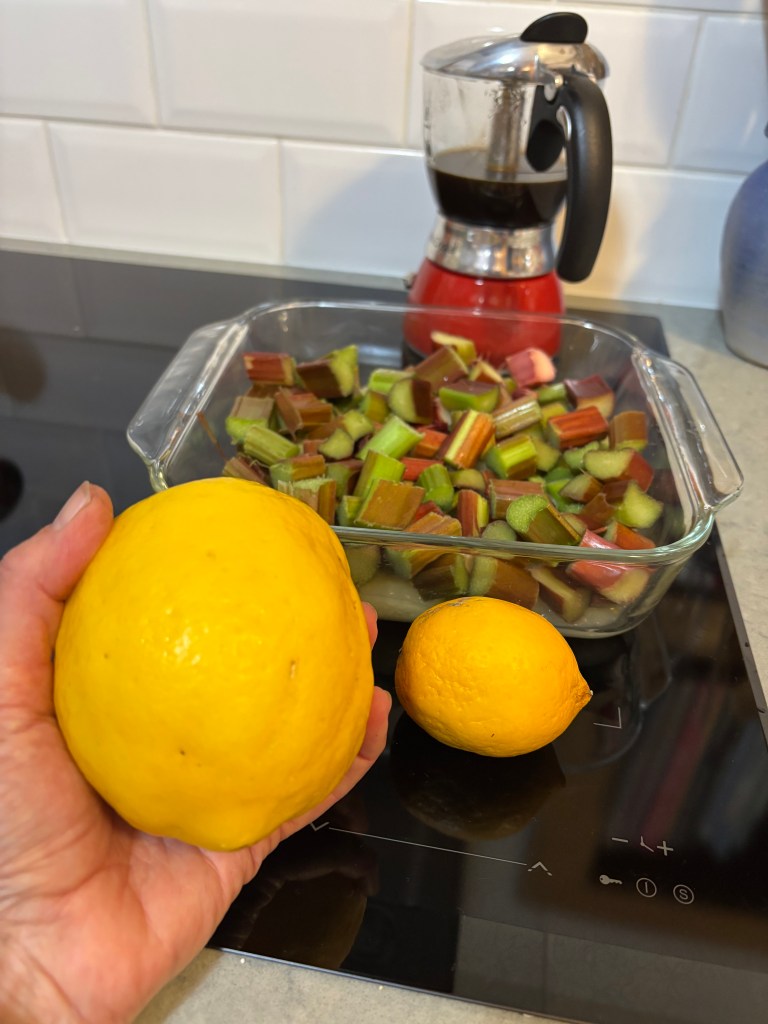 I picked this huge lemon this afternoon and used it all in a dessert. The ‘normal sized’ lemon beside it is from the same tree.