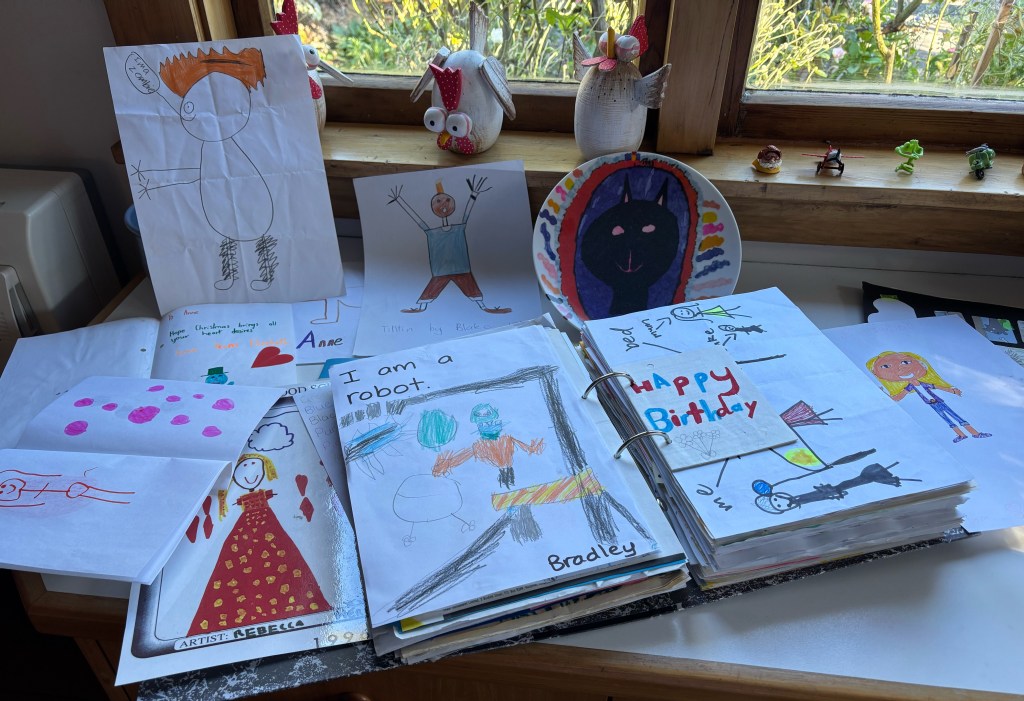Here is a glimpse of the archive. – including work by the little boys’ mother. She loves that they enjoy drawing as she and her cousins did when they came to my house as children.
