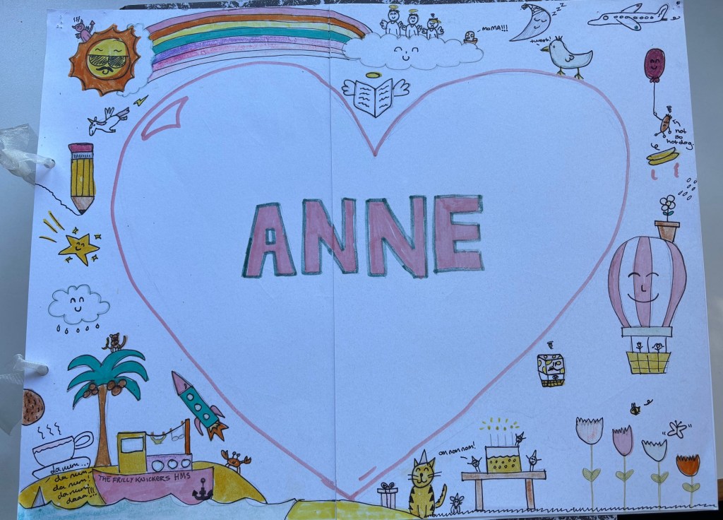 The artist of this oversize birthday card would later graduate with a fine arts degree.
