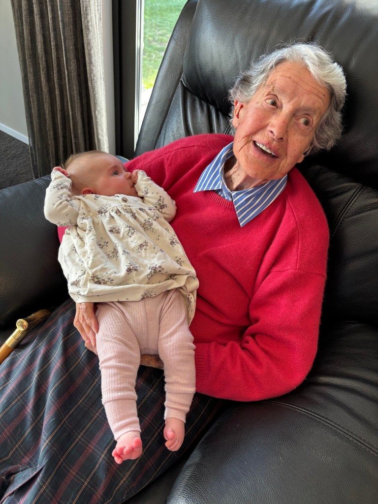 Mum met wee Georgia, her third great-grandchild, when my niece and her family came up from Dunedin for the long weekend.