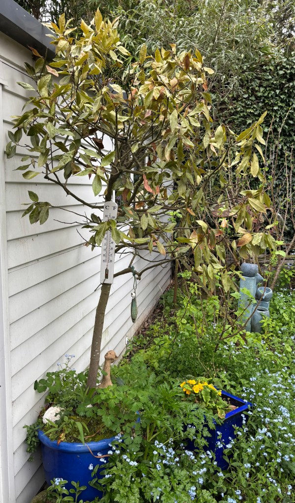 A bay tree, also in a container, is looking sick and many leaves are dotted with scale. I’ve sprayed it with Eco-oil, watered and fed it.