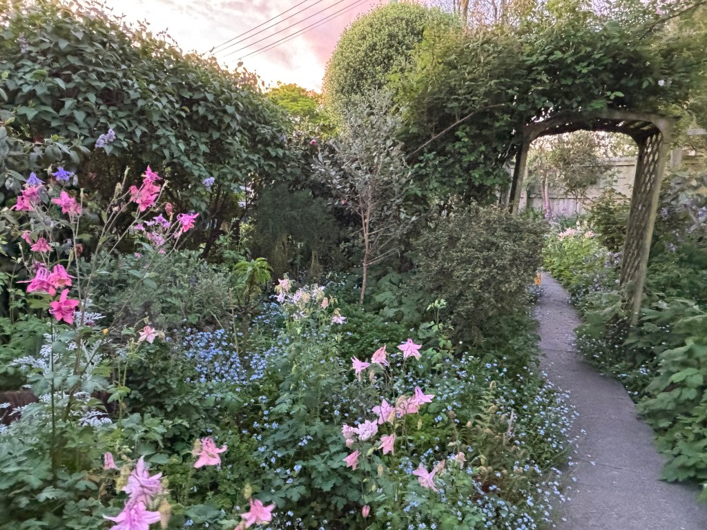 Bees like the forget-me-notsAquilegia growing between paving stonesFox glove beginning to flower