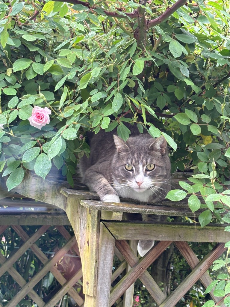 I can only imagine what adventures he has. Sometimes he’s away for hours. Last week he came home looking sorry for himself with a chewed neck ruff and bits of fur falling out.